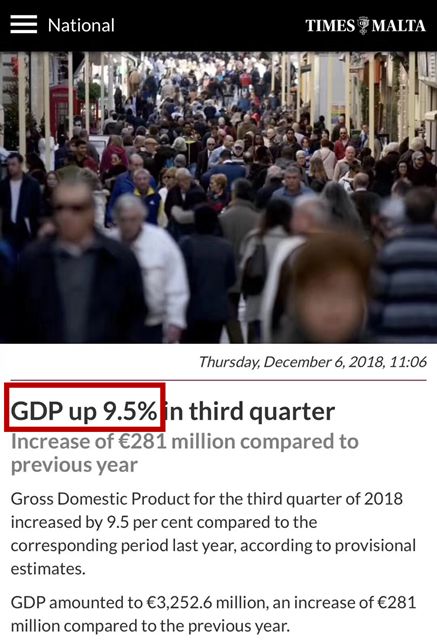 馬耳他的經濟漲幅近年來可謂是驚人,2016年為6.4%,位居歐盟第二,2017年6.6%位居歐盟第三,而今年更是有了9.5%的驚人漲幅。