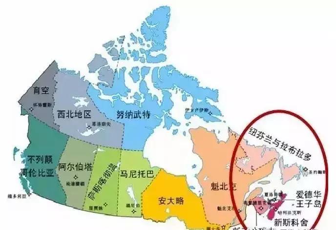 大西洋沿岸四省包括新斯科舍省(Nova Scotia)、新不倫瑞克省(New Brunswick)、愛德華王子島省(Prince Edward Island)、紐芬蘭省(Newfoundland)。