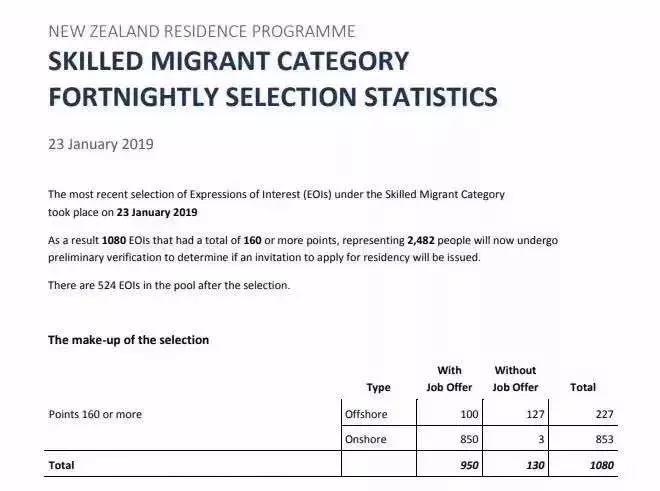 新西蘭技術移民是新西蘭政府為了引進海外技術人才以平衡新西蘭勞動力市場,提高可持續發展力,促進經濟增長而設立的移民項目。和澳洲技術移民一樣,新西蘭技術移民對申請人有EOI打分要求,篩選結果達到160分就可以提交EOI申請。 新西蘭技術移民2019年1月23日EOI最新篩選結果:本輪共有1080個申請人獲邀,相比于上一輪的邀請人數多576個名額。由此可見新西蘭技術移民或將成為一大綠色通道。