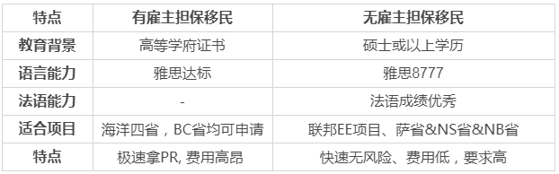 加拿大技術移民項目按照是否有雇主擔保分為兩類: