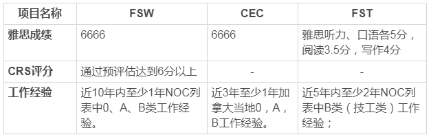 (2)適用項目:聯(lián)邦EE項目、薩省&NS省&NB省緊缺職業(yè)技術移民、魁省技術移民;