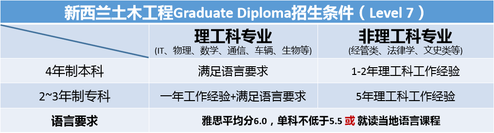 在專業確定好后,接下來是入學申請,在新西蘭,土木工程是熱門專業,競爭激烈,所以入學門檻很高,所以我給老李推薦了入學門檻稍低的學士后文憑(GD)課程,GD課程屬于Level 7 水平的課程,學制一年,畢業快,雅思也只要6.0,比PGD或碩士課程的要求低不少。